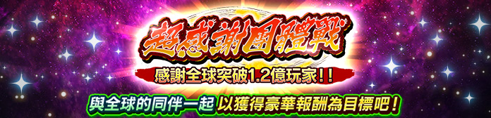 舉辦「超感謝團體戰 - 感謝全球突破1.2億玩家!! -」!!